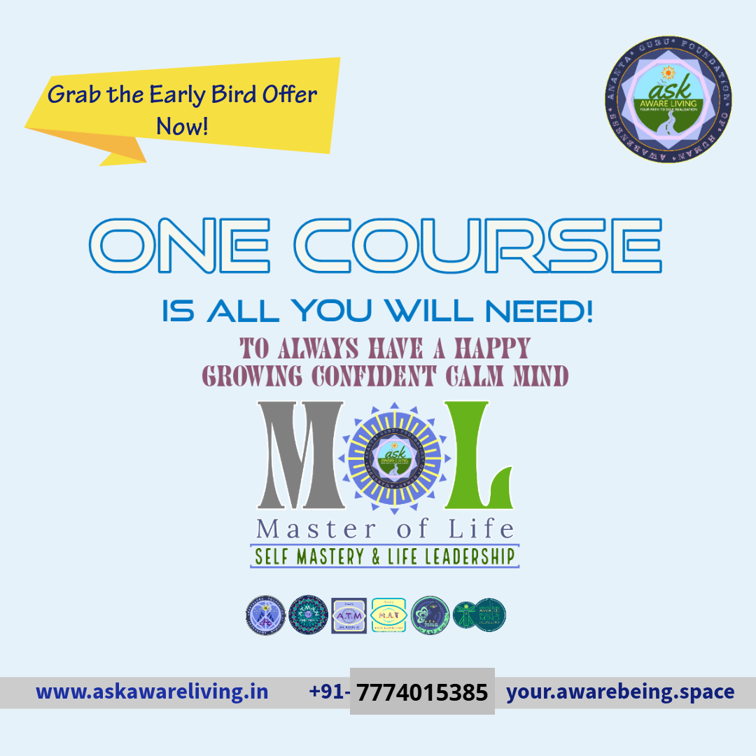 Master Of Life is a 5 Weeks | 10 hrs Course, conducted every Sunday, 2 hrs each. It is designed based on Mindful Aware Teachings (M.A.T) which ensures Transformation to happen right from the day 1.